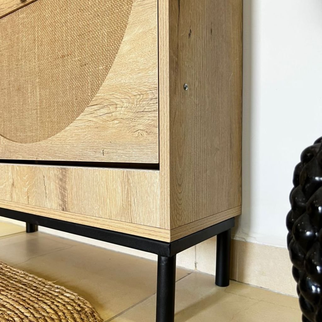 Meuble à chaussure classique en toile de jute: Fabriqué en MDF robuste, ce meuble à chaussures est encore plus élégant et classique. Ce meuble fin s’intègre facilement dans les espaces étroits des halls d’entrée. Les éléments naturels du meuble embellissent votre intérieur.